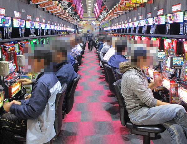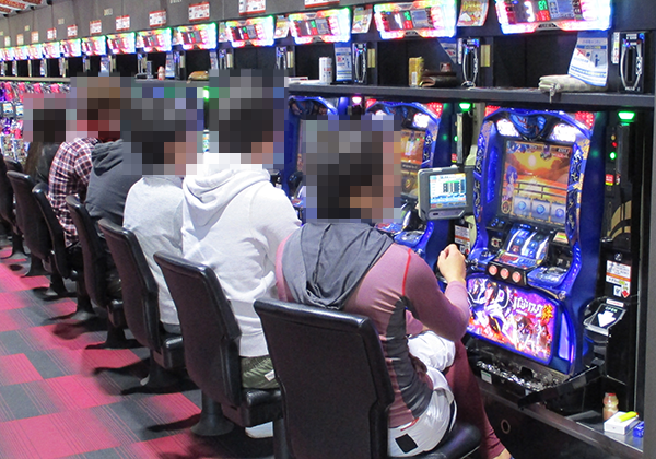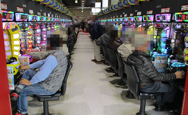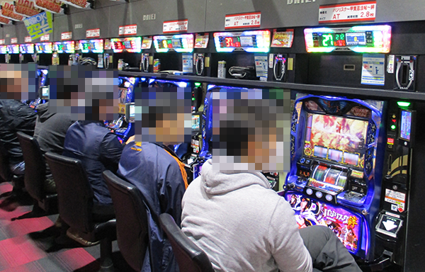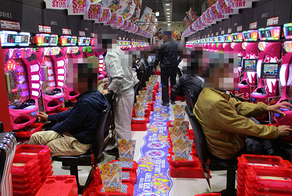 パチンコとパチスロのどちらもたくさんのプレイヤーでにぎわっており、シマ全体に笑顔が広がっていた。