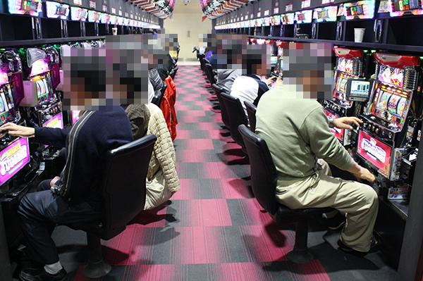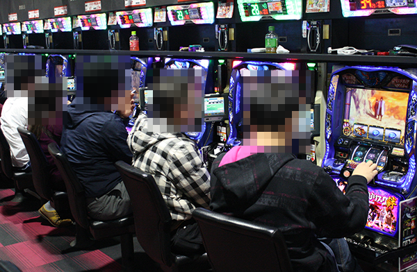 ジャグラーシリーズも厚く支持されており、多くの機種が満席となっていた。