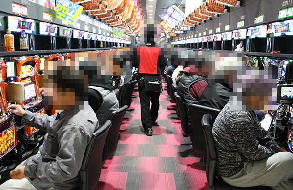 「押忍!番長3」やハナハナシリーズなど、機種やスペックを問わずに、さまざまな場所が活気づいていた。