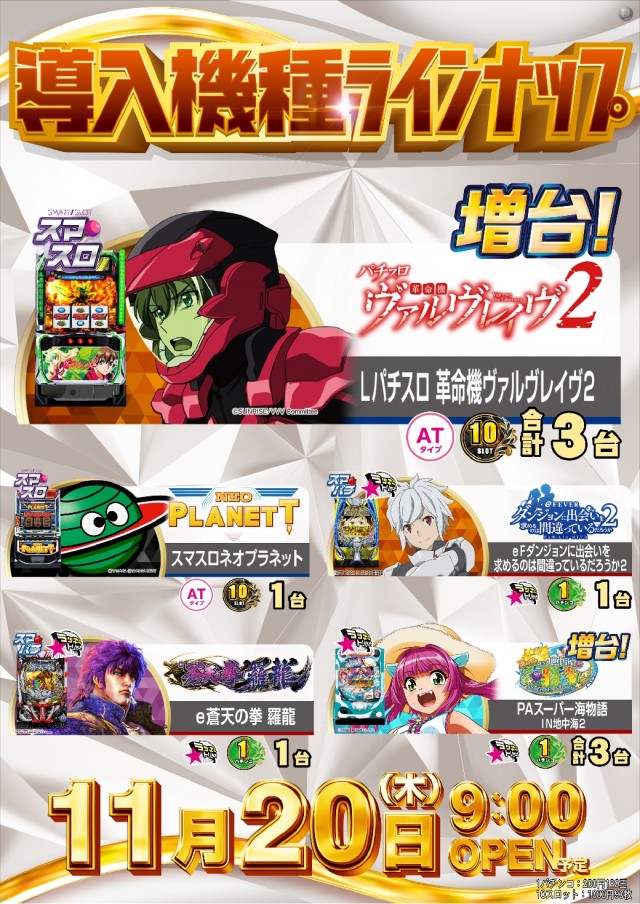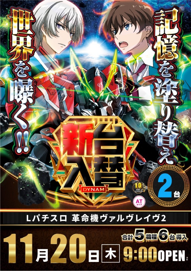 明日20日(木)L革命機ヴァルヴレイヴ2増台!全5機種導入