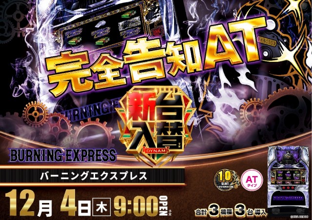 本日4日(木)バーニングエクスプレスなど全3機種導入
