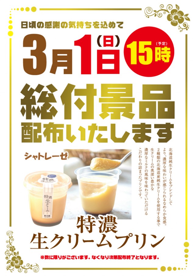 🍮総付景品🍮配布予定❗3月初めの週末も全力営業❗朝9時開店❗