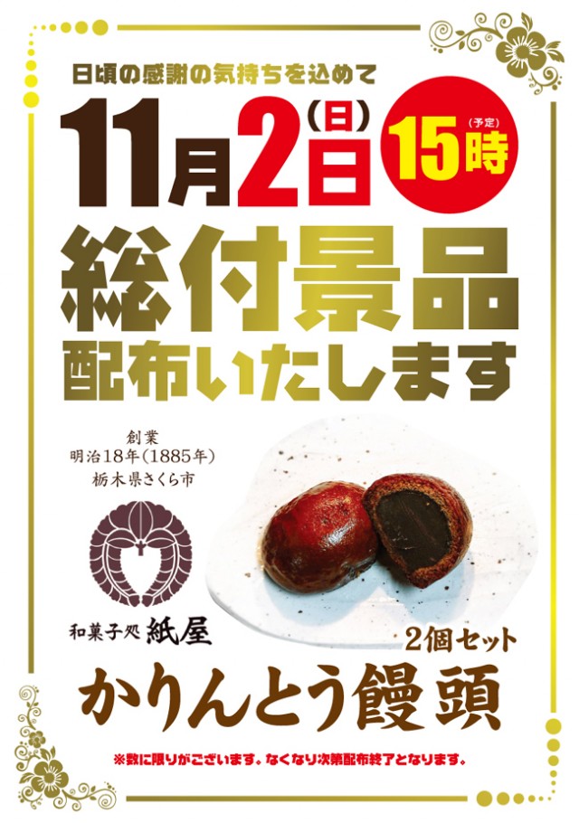 ※当店の抽選会は11/15(土)&11/16(日)の15時開催予定!!※
