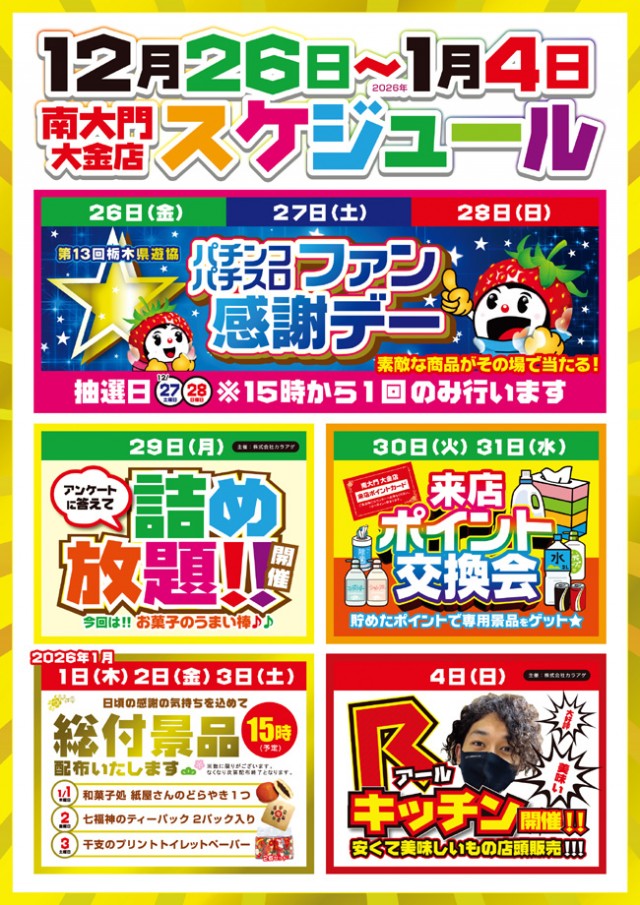 スケジュール公開❗🌄年末年始🌅も楽しさ盛り沢山🎶朝9時開店🌞