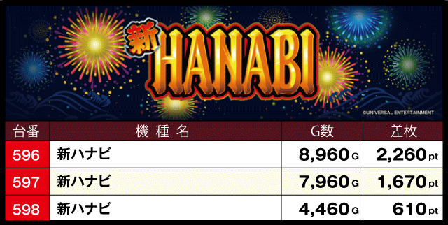さらに、『新ハナビ』も全3台がプラスで終了、ド派手な記録は無いものの、この安定感はファンにとって魅力の一つと言えるだろう。