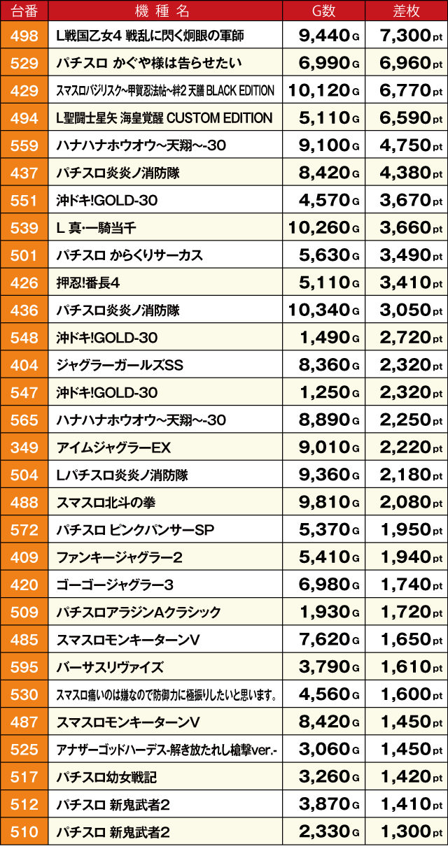 ※差枚pt数順に掲載しています。