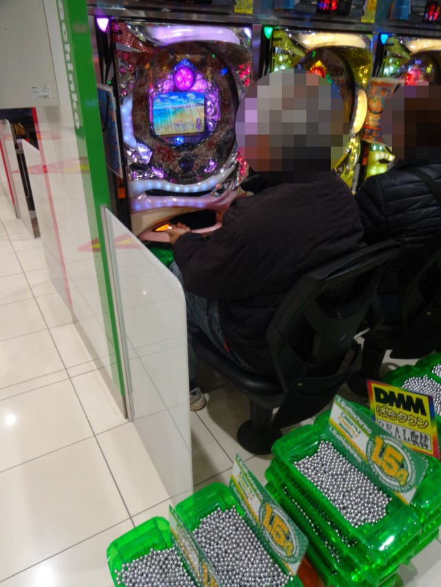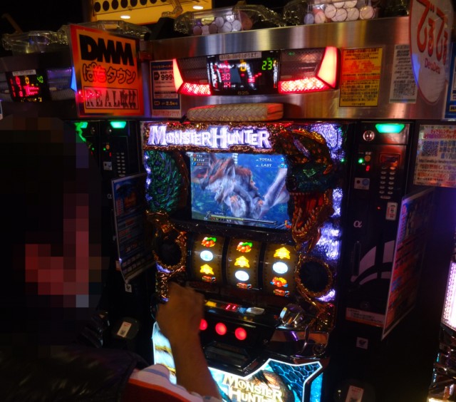1,000円/47枚スロットコーナーでは、「パチスロ モンスターハンター 月下雷鳴」が微笑ましい光景を披露していた。シリーズ新作が出たにも関わらず、その人気は衰えることはなかったようだ。