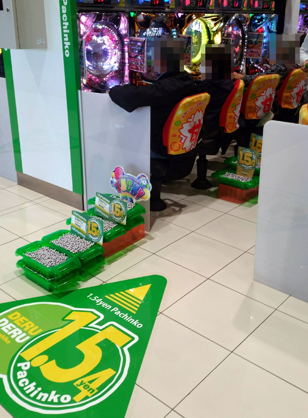 同店のパチンココーナーは4円、1円に加えて、1.54円パチンコを80台設置。