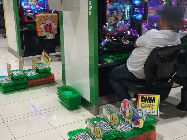 15時前の4円パチンココーナーで活躍を見せていたのは「パチンコCRクイーンズブレイド2 レイナ」。プレイヤーは満足げな表情で遊技していた。