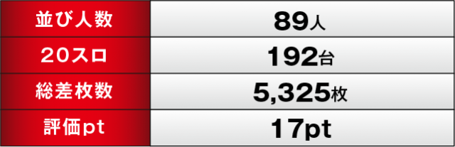 終わってみれば今回のトータル差枚数は+5,325枚と、前回を上回っての連勝に成功!評価ptも前回より上昇し、17ptを獲得した。次回では、連勝はもちろんのこと、プラス差枚・評価ptもさらにアップすることを期待するとしよう。