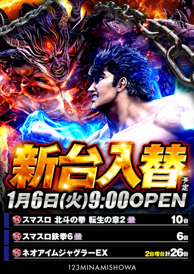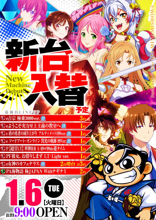 1月6日(火)新台入替予定!!
