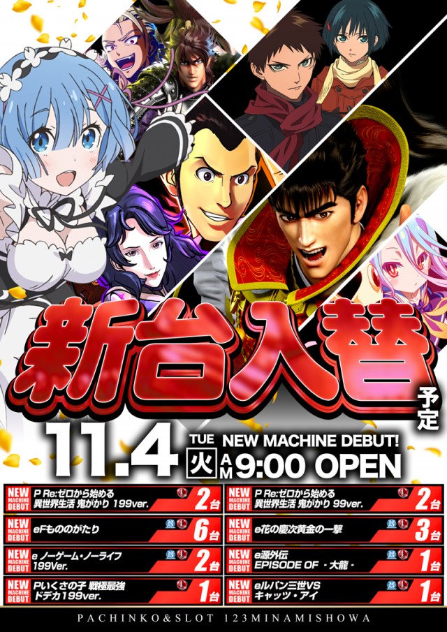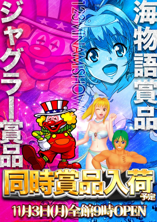 11月3日(月)ジャグラー&海物語&山佐賞品入荷予定!!