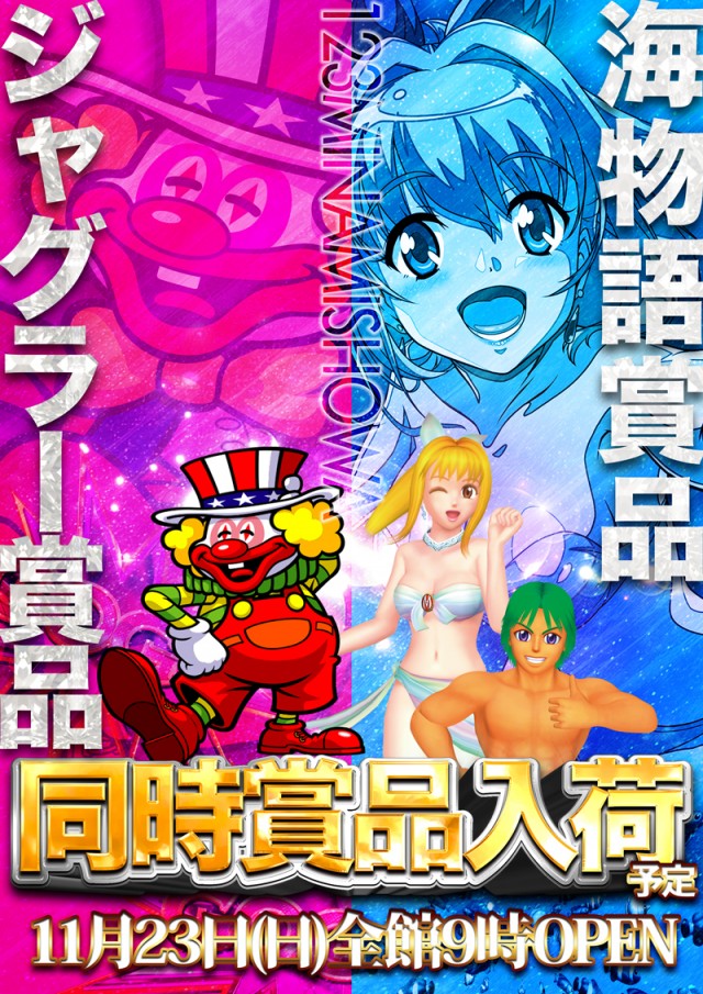 11月23日ジャグラー&海物語&SANKYO賞品入荷予定!!