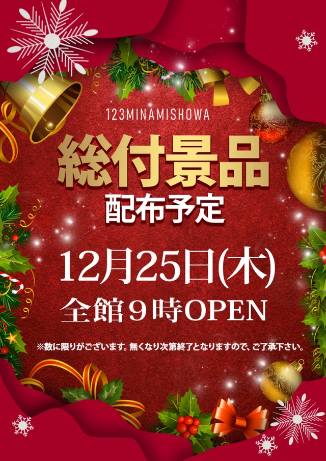 12月25日(木)総付景品配布予定!!