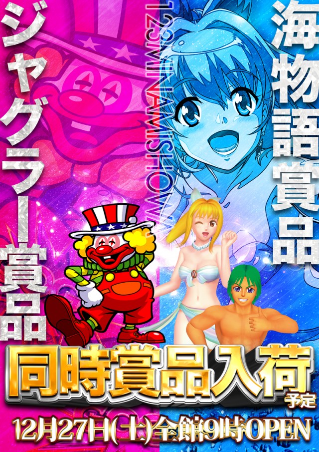 12月27日ジャグラー&海物語&SANKYO賞品入荷予定!!