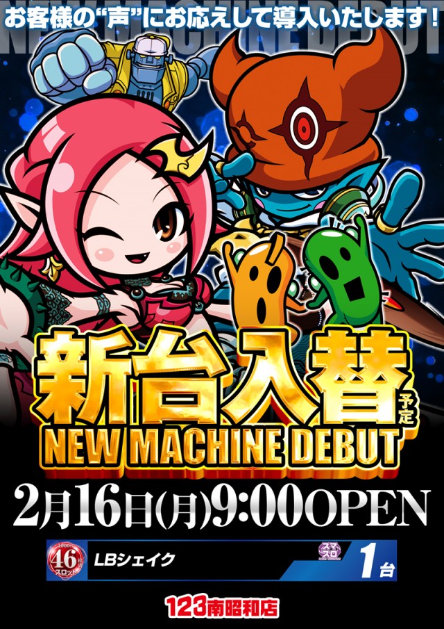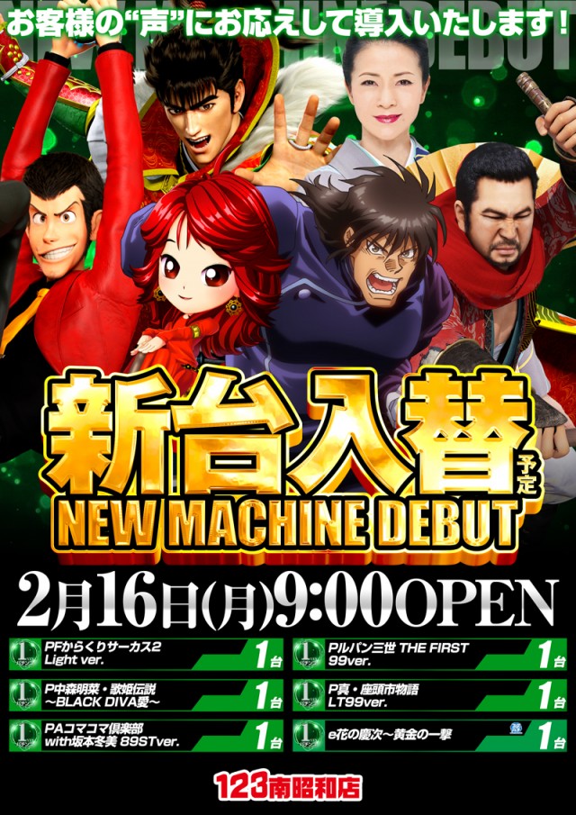 2月16日(月)123南昭和店新台入替予定