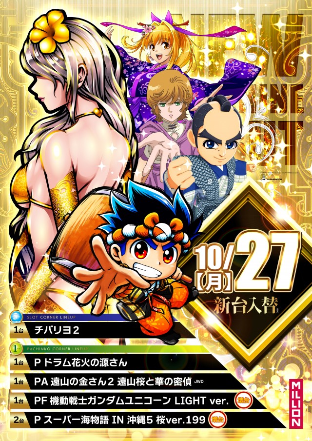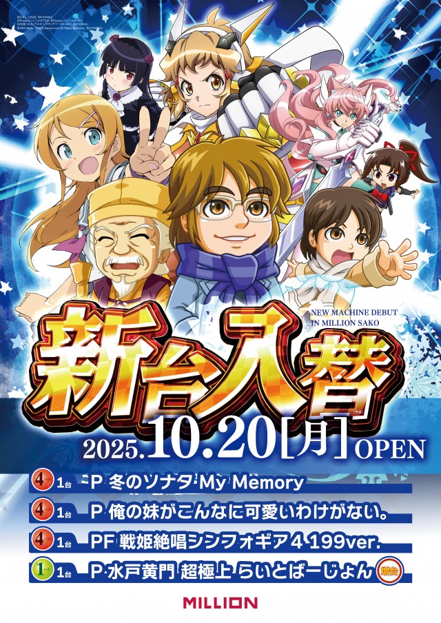本日10月20日新台入替予定!ミリオン佐古店へご来店ください
