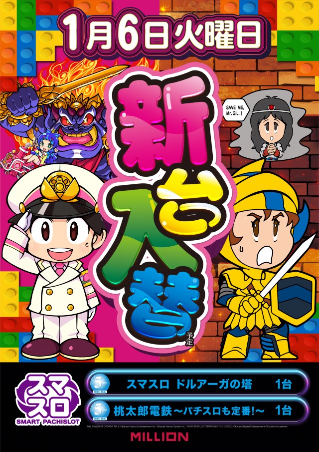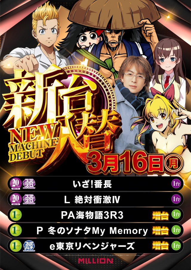 本日新台入替予定!ミリオン佐古店へご来店ください
