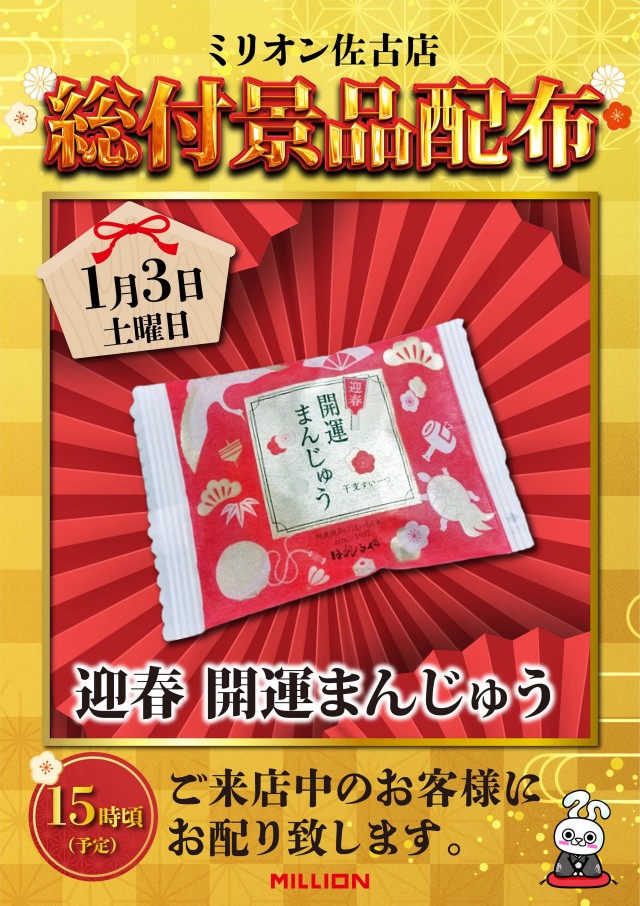 ミリオン佐古店です。本日1月6日は