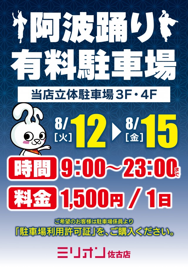 阿波踊り有料駐車場をご用意しております。