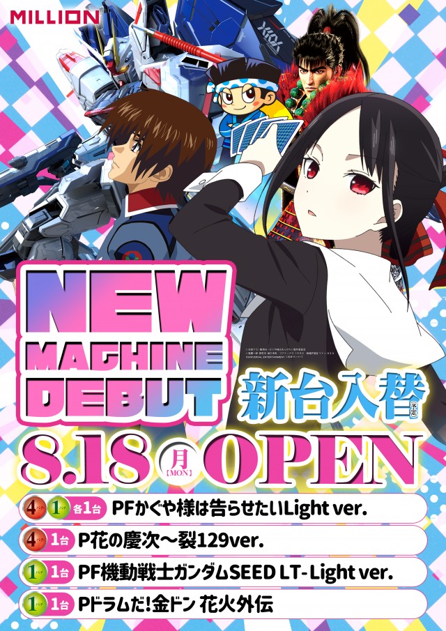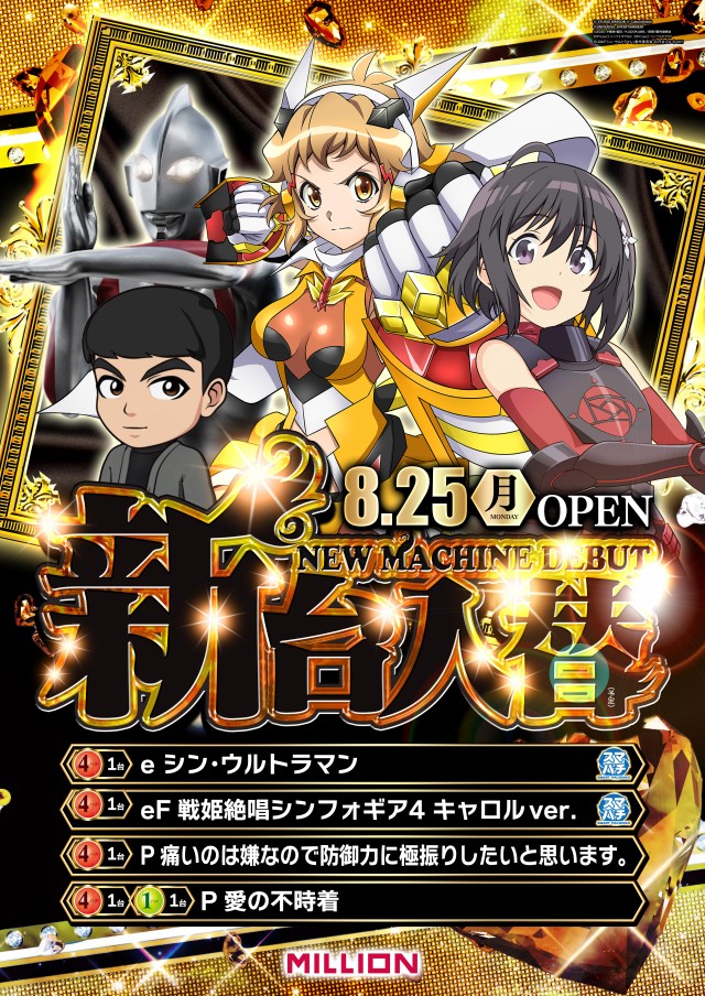本日新台入替予定!ミリオン佐古店へご来店ください