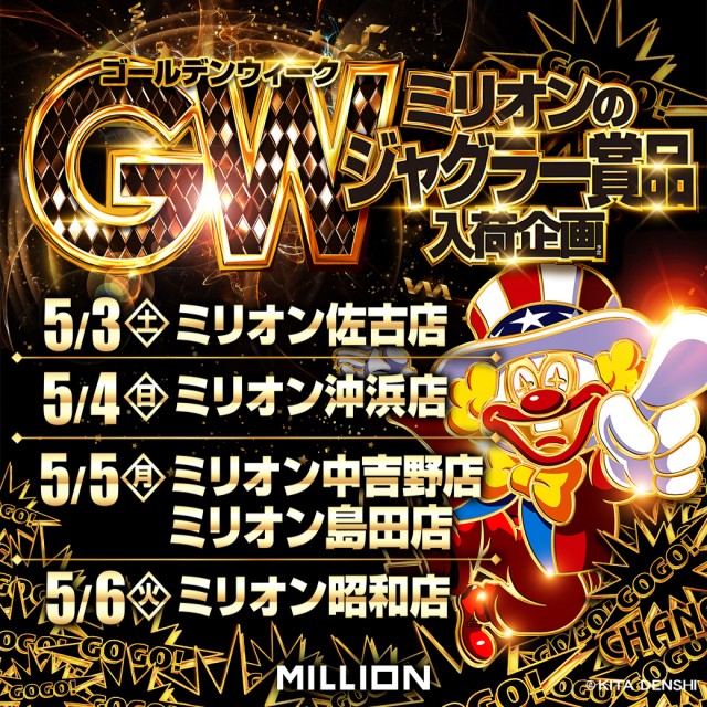 GW合同企画!ミリオン佐古店ジャグラー賞品入荷!
