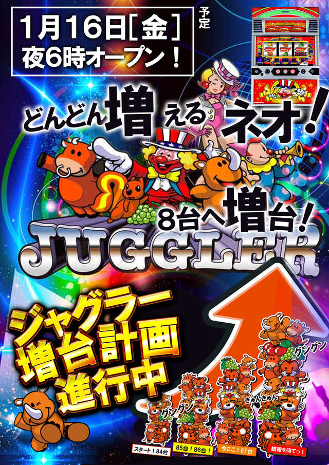 16日ネオアイム増台 新台は『夜6時』開放予定🌛