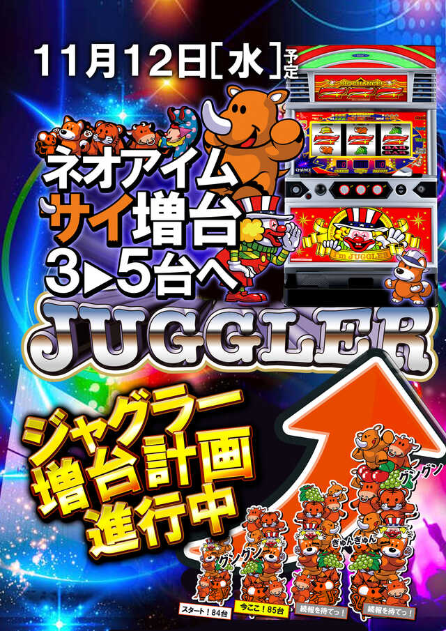 12日 ネオアイム増台 新台の開放は夜6時予定🌛