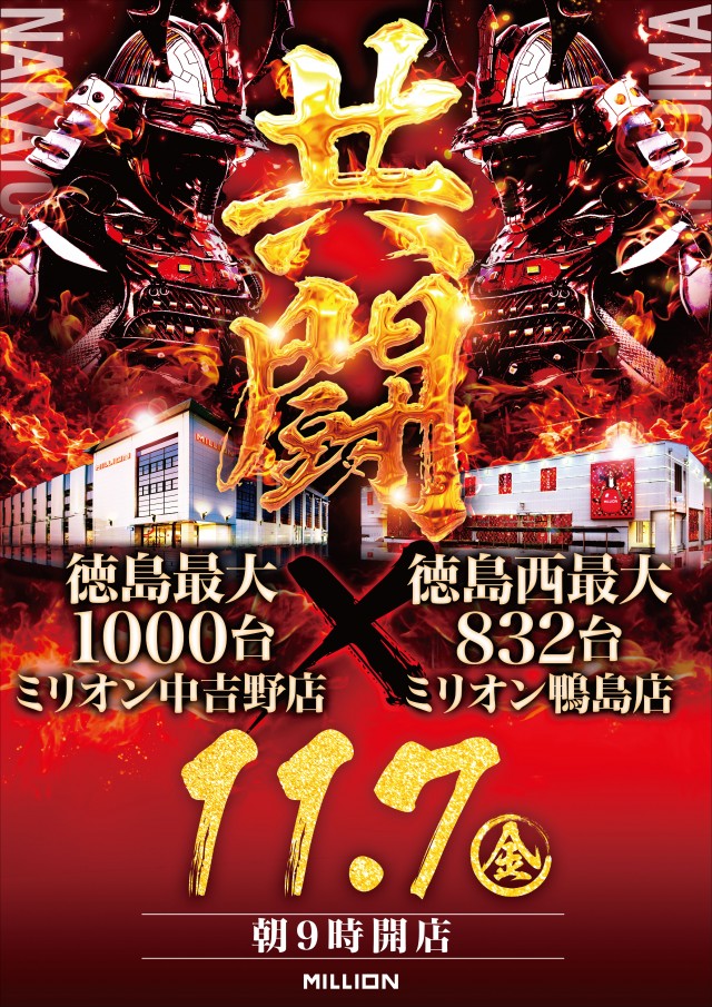 💗11月17日 徳島最大ミリオン中吉野店9時開店!💗