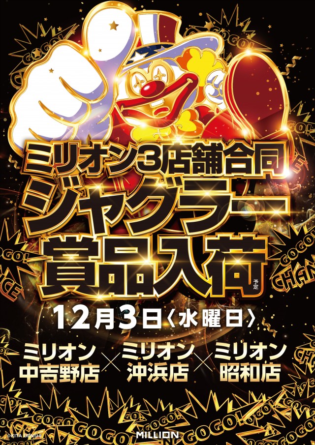 💗12/3 ミリオン3店舗合同 ジャグラー賞品入荷!!!💗