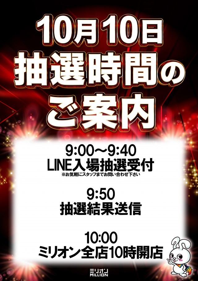 💗10月10日 LINE入場抽選は9:00~9:40受付💗
