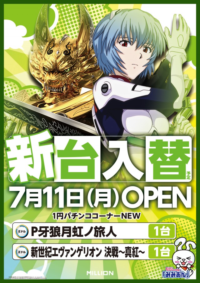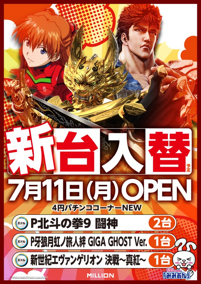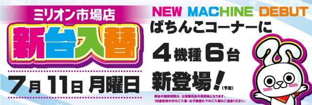 ミリオン市場店!7月11日新台入替!4機種6台導入予定!!