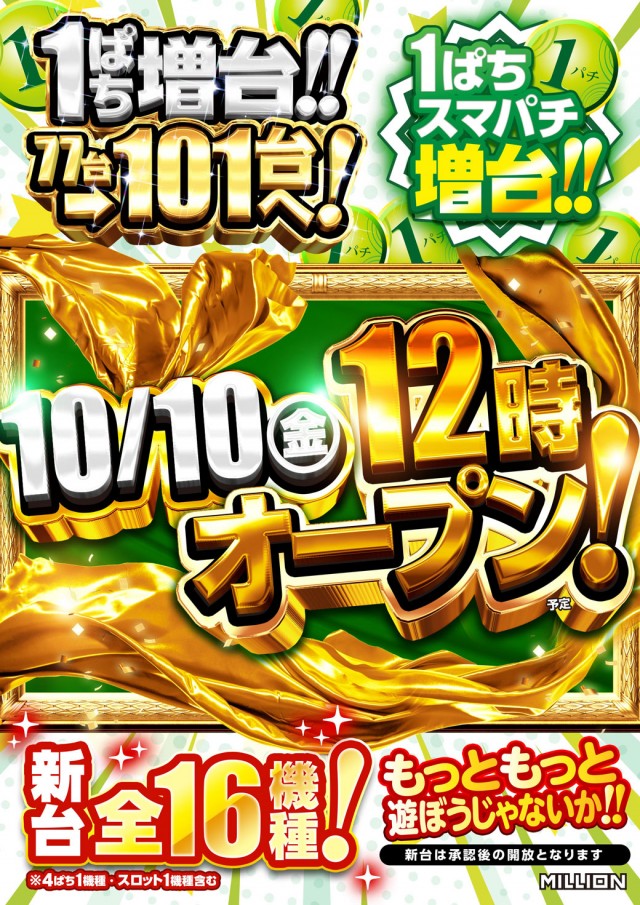 明日、10月10日 1円P増台&12時OPEN!!