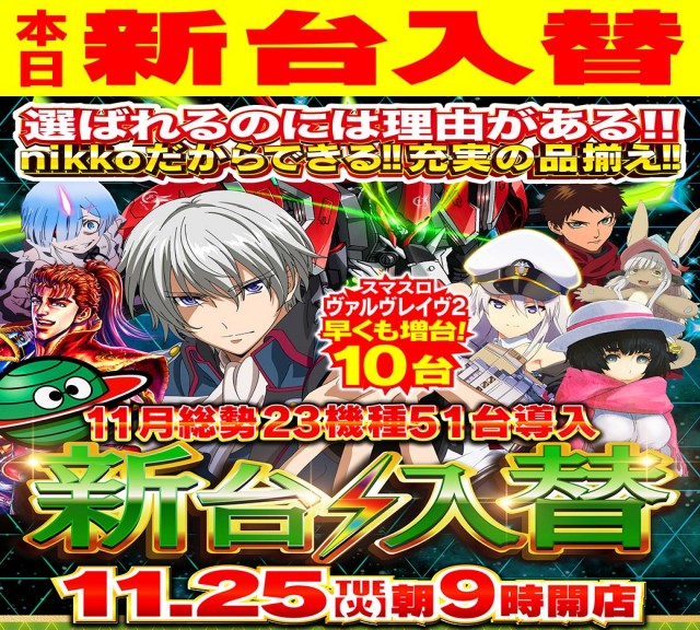 ☆本日11月25日 新台入替予定☆