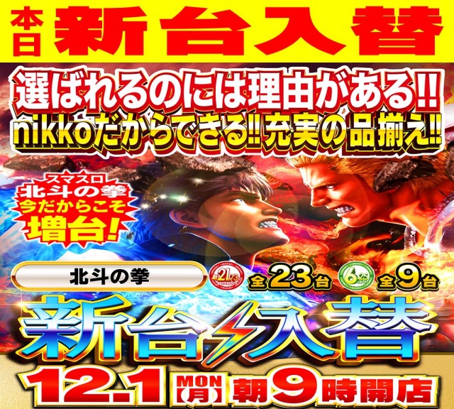 ☆本日12月1日 新台入替予定☆
