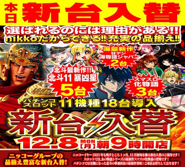 ☆本日12月8日 新台入替予定☆
