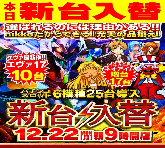 ☆本日12月22日 新台入替予定☆