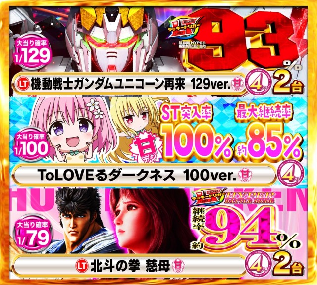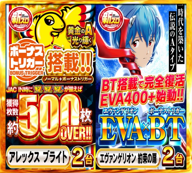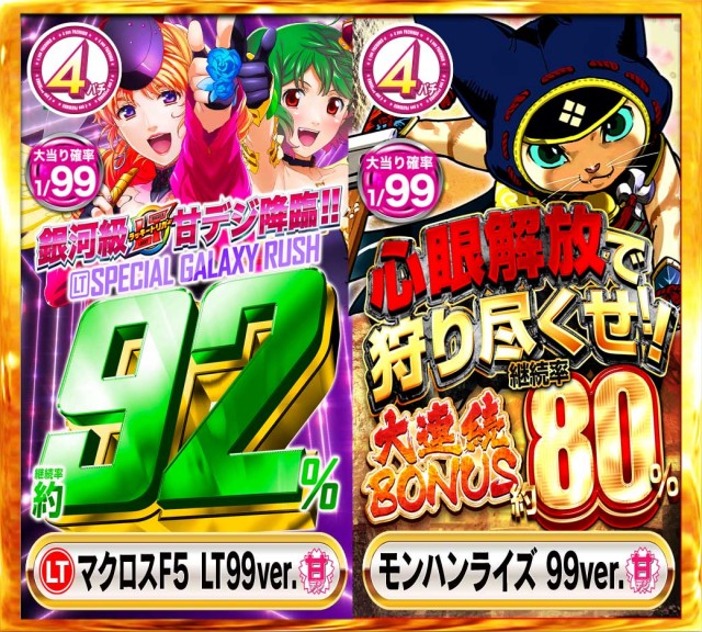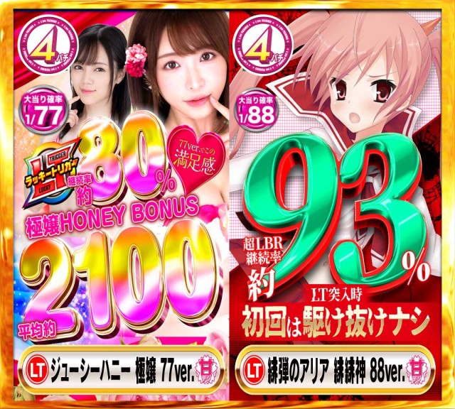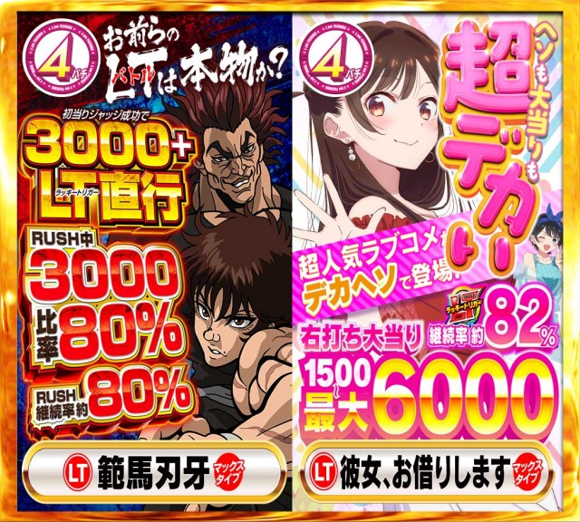 当店ではお客様のニーズに合わせたパチンコ2種別とスロット2種別、計4種別をご用意致しております。