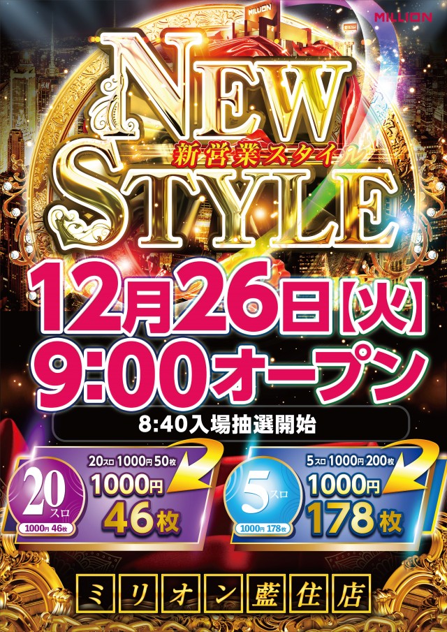 12/26(火)ミリオン藍住店🌟新営業スタイル開始!!