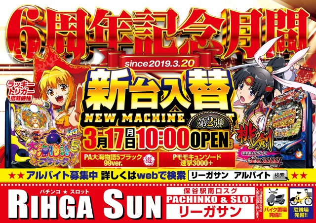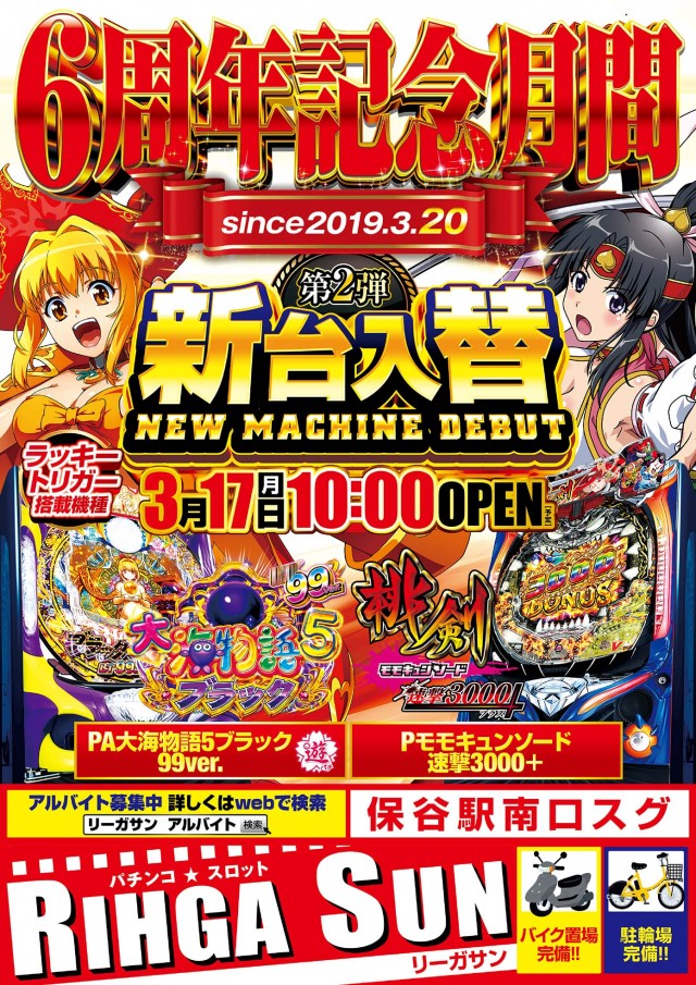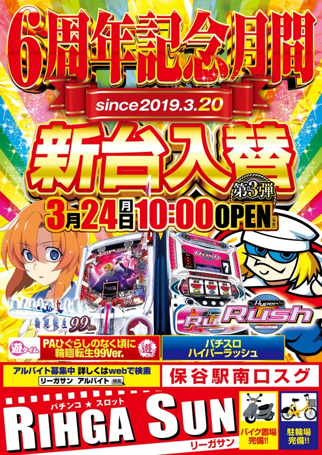 明日3月20日で6周年! 10時オープン 朝は抽選入場!