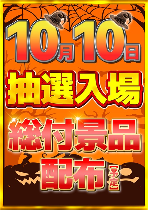 🎃10月10日総付景品配布🎃朝の入場は抽選入場🎃