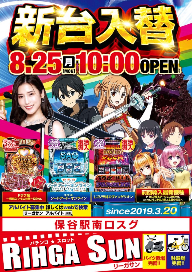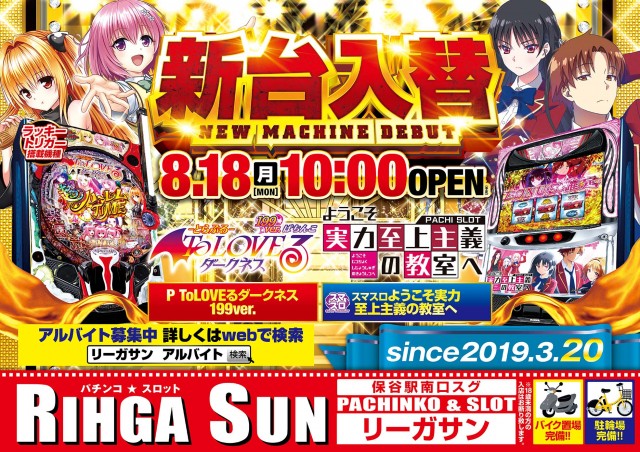 通常時は並び順になります。新装開店など一部ご案内のある日は抽選入場とさせていただきます。詳しくはホームページやプッシュ通知などをご確認ください。 |
