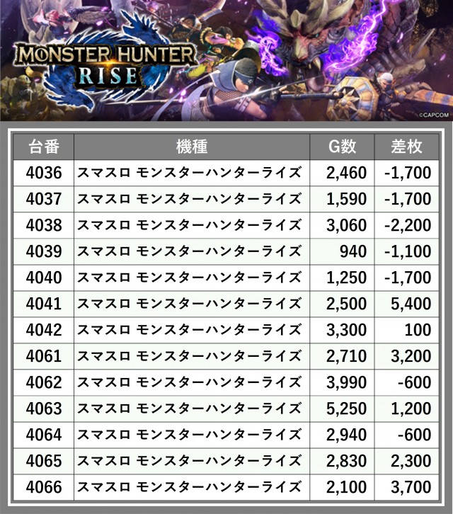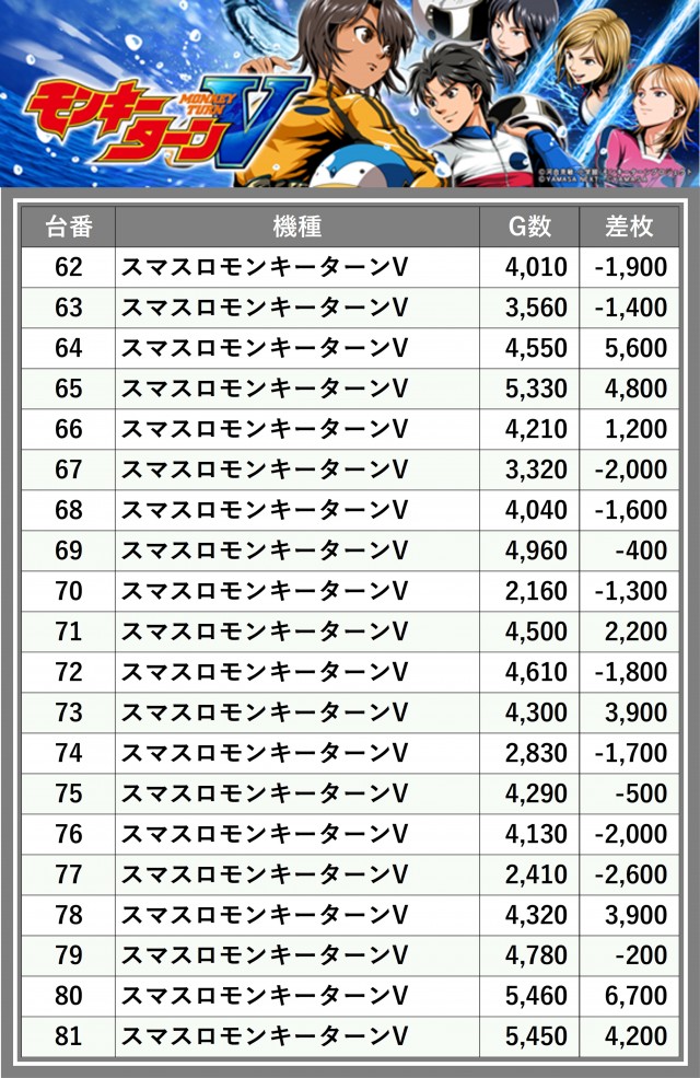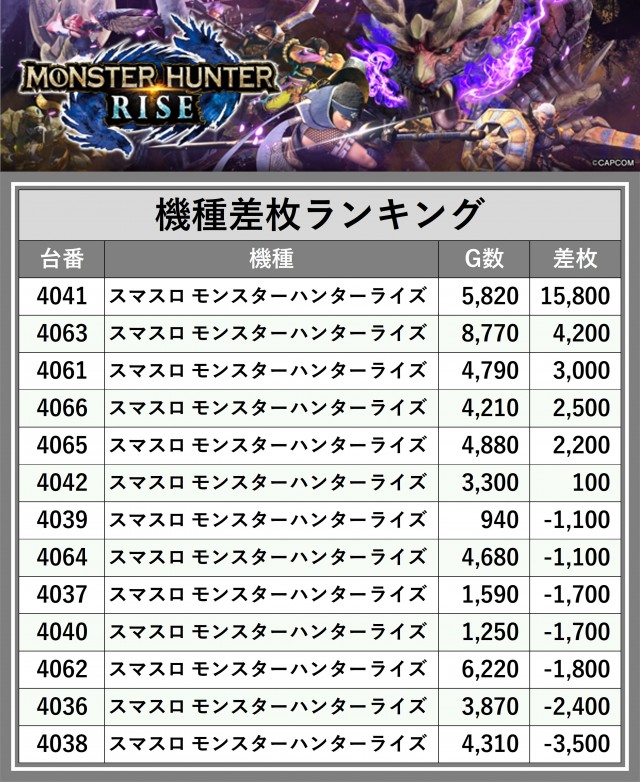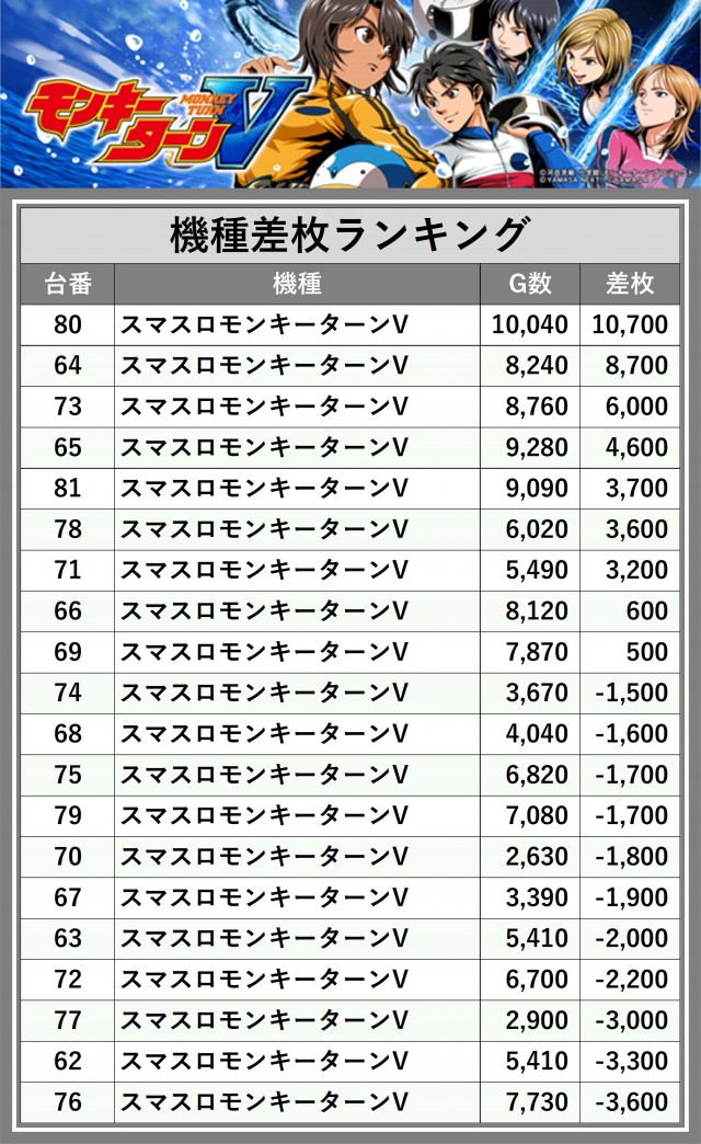 ※差枚数順に掲載しています