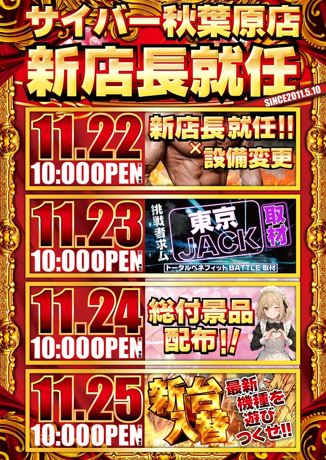 11月4日(火)大型新台入替★★全10機種合計22台導入★★