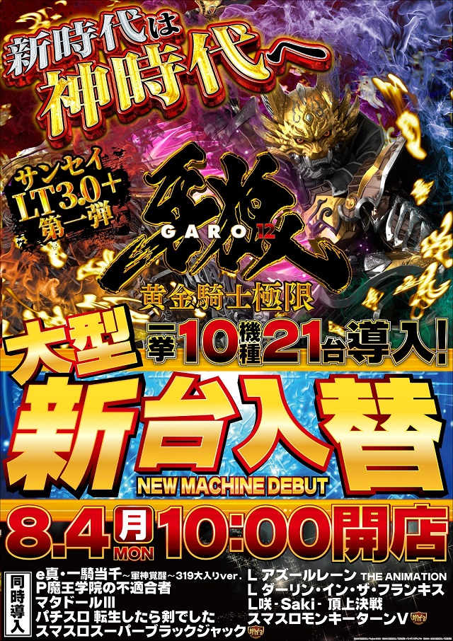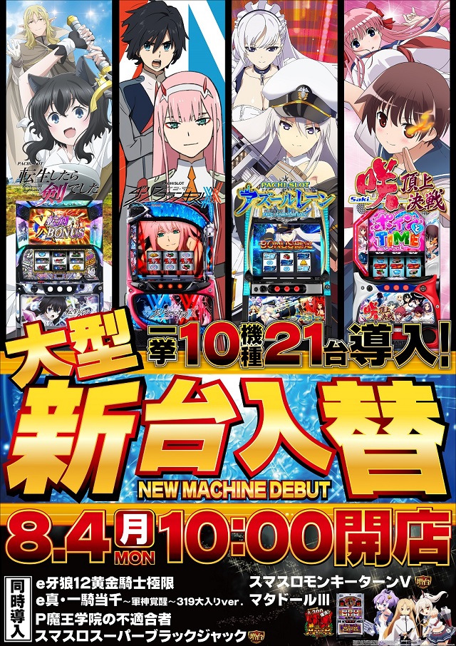 2025/08/048月4日(月)大型新台入替★★全10機種合計21台導入★★