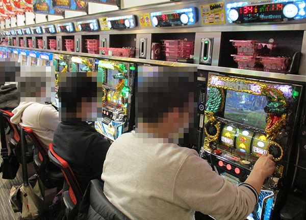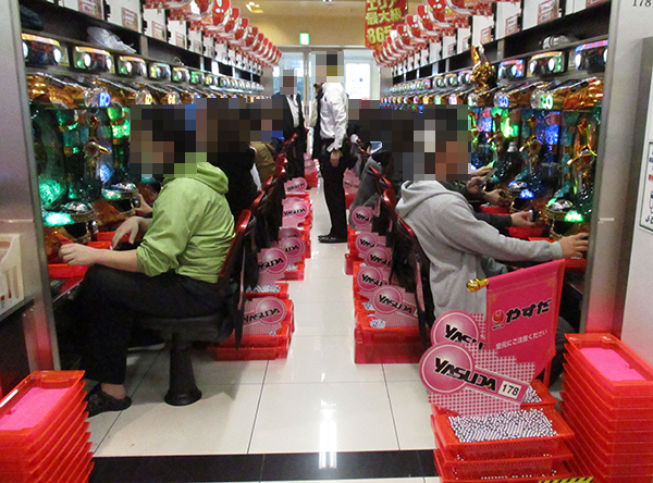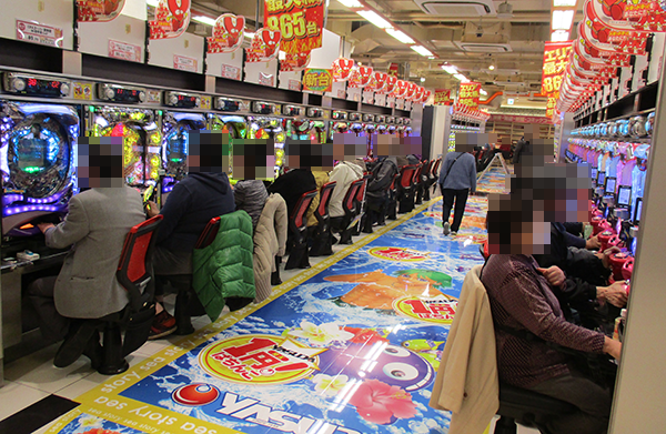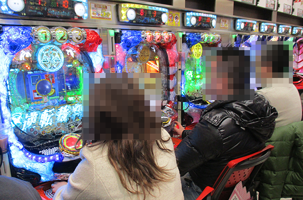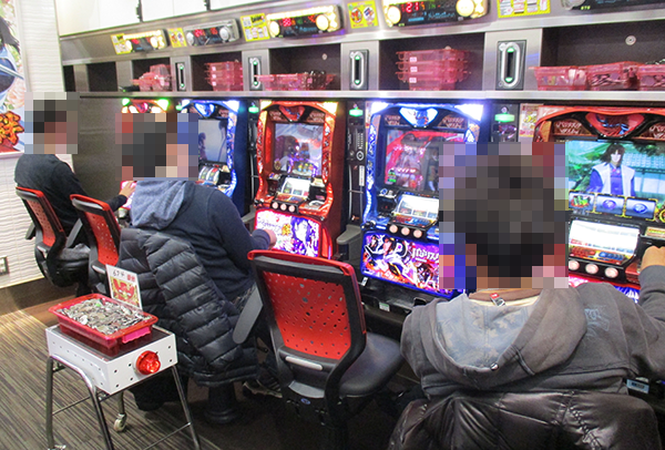 ホール内の様子をみてみると、パチンコ・パチスロコーナーともにたくさんのプレイヤーが集まっており、にぎやかな状況となっていた。