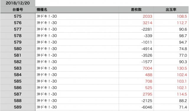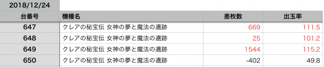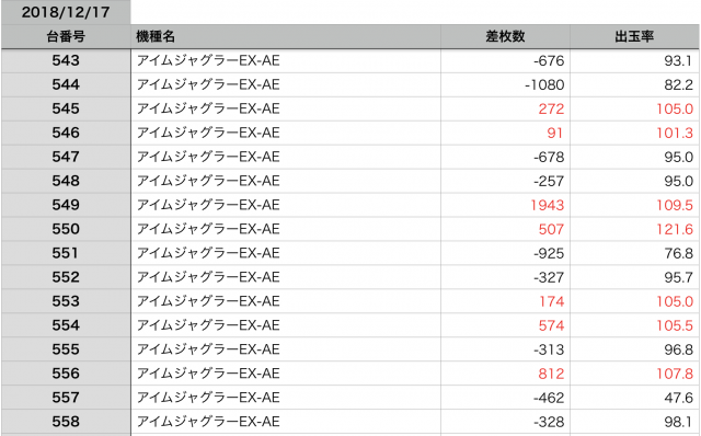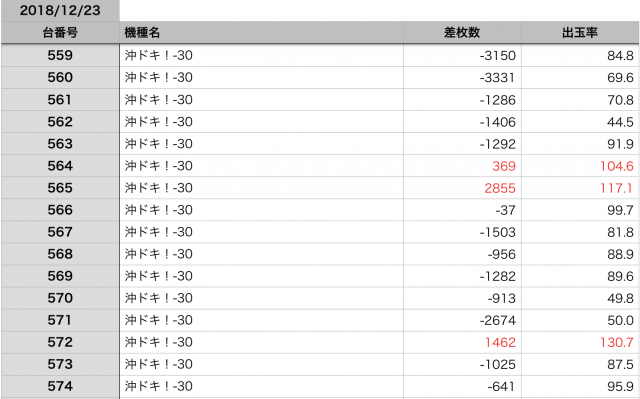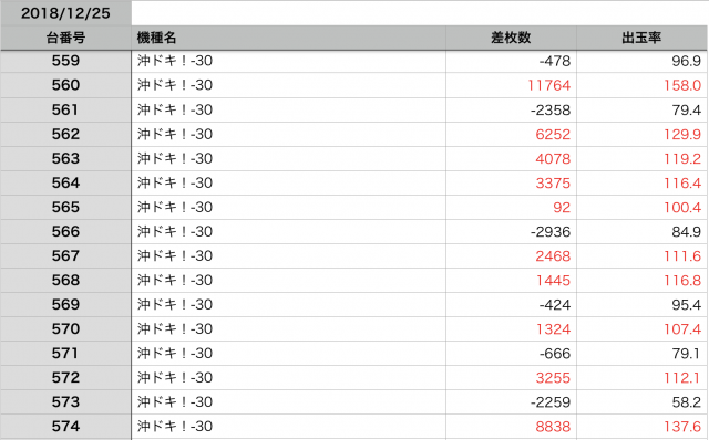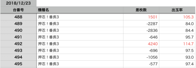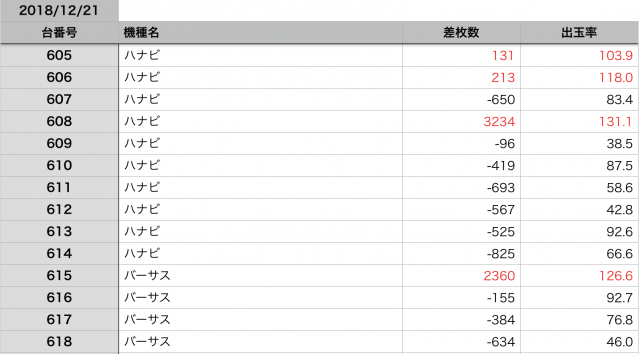 マイナス差枚の激しい台も目立ちますがプラス差枚の台も見逃せない。