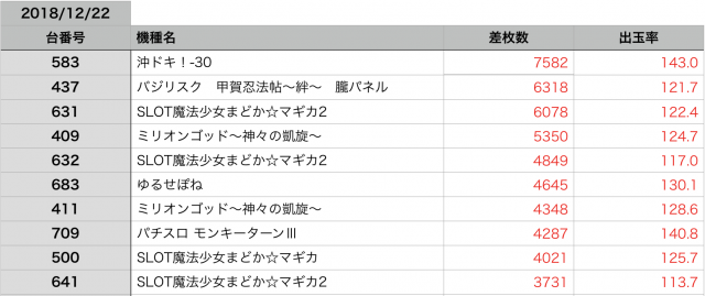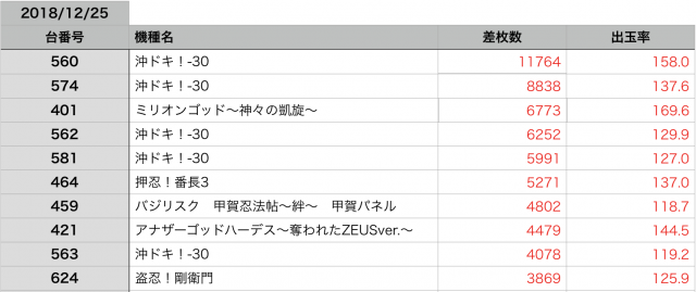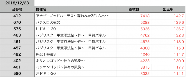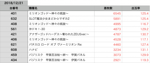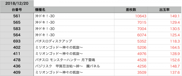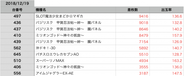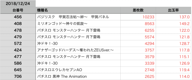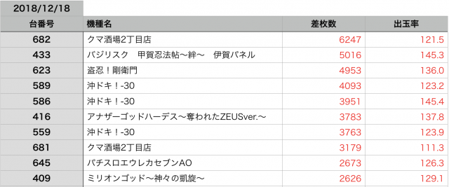 4位の6500枚をはじめ、複数がプラス差枚の多い結果に!