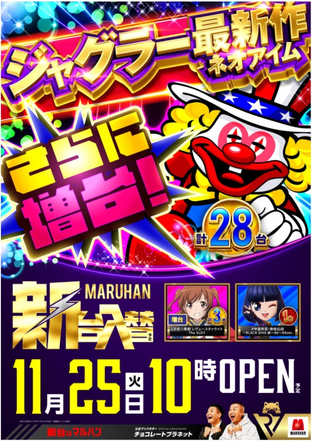 11月25日(火)新台入替予定!ネオアイムさらに増台!