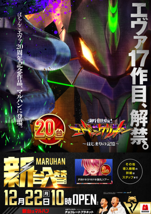 12月22日新台入替予定!eエヴァ17 L沖ドキ他導入!